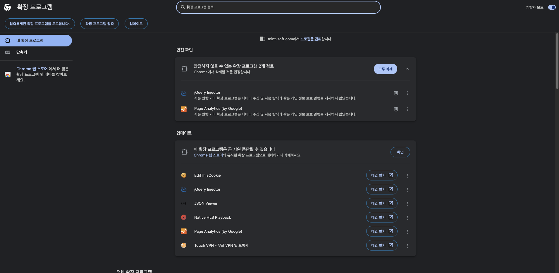 chrome://extensions에서 개발자 모드 활성화- "로드 해제" 버튼으로 프로젝트 폴더 선택